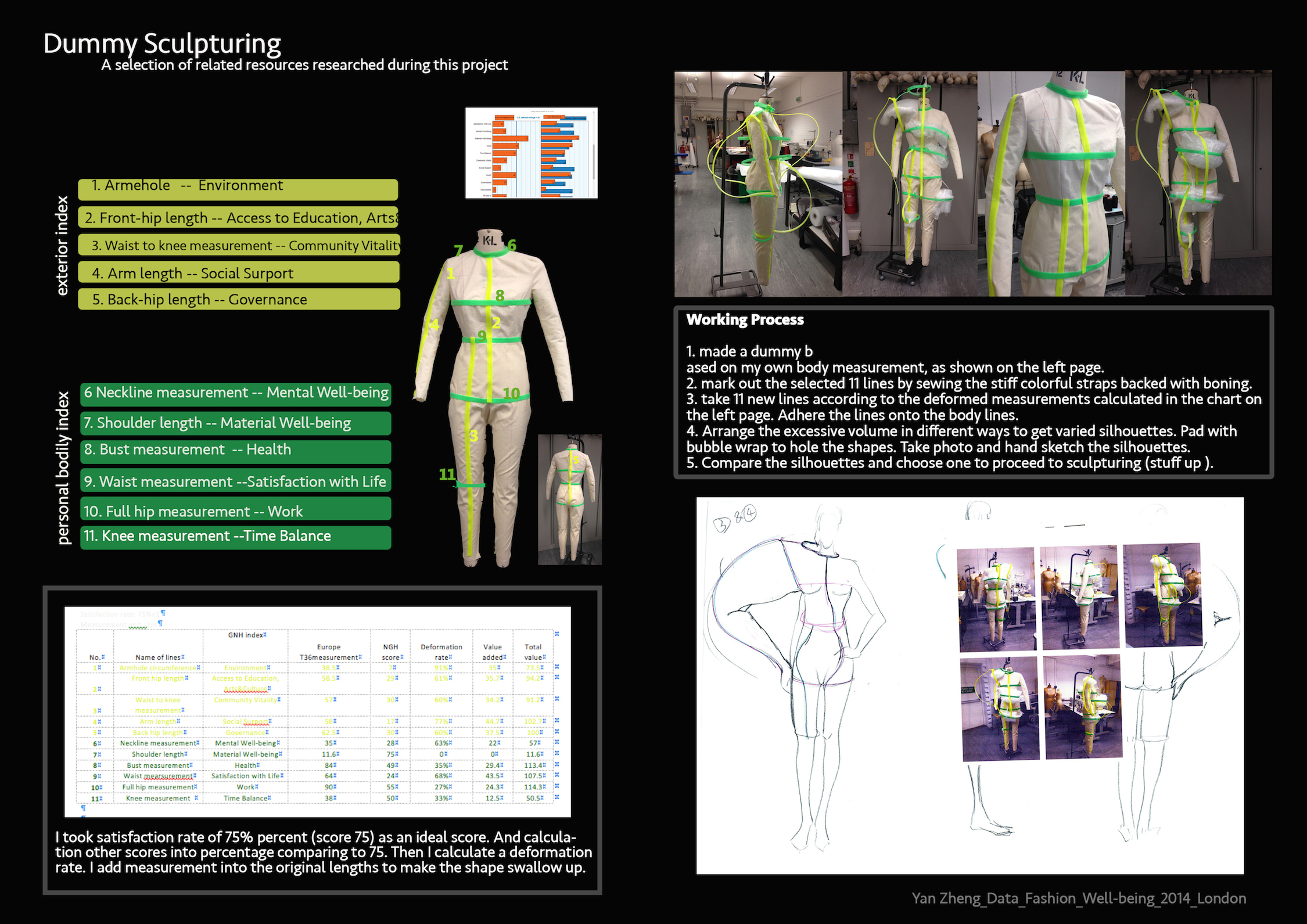 My data from Gross National Happiness(GNH) survey result has been manifested into a dummy with different measurements which embodies the individual struggle when having to conform to social norm for validation as well as questions the stereotyped body shape in the fashion design process.